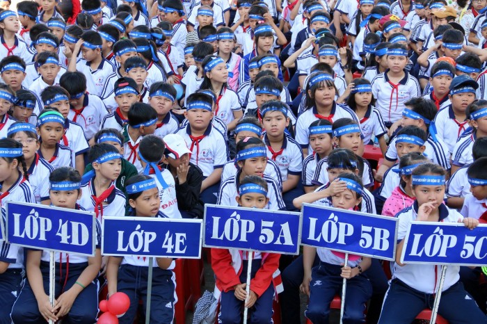 | Ngày 11/10/2015, tại Tỉnh Ninh Thuận , Tổ chức UNICEF tại Việt Nam, Trung tâm Quốc gia nước sạch và vệ sinh môi trường nông thôn phối hợp với Trung ương Hội Liên hiệp Phụ nữ Việt Nam tổ chức Lễ phát động hưởng ứng “Ngày Thế giới rửa tay với xà phòng” (15/10). Tại buổi lễ, đại diện lãnh đạo tỉnh Ninh Thuận, Hội Phụ nữ và học sinh trong tỉnh đã phát biểu hưởng ứng và tham gia cam kết rửa tay với xà phòng; Hội Phụ nữ các huyện, thành phố đã ký cam kết thực hiện rửa tay với xà phòng và cam kết 3 sạch (Sạch nhà - Sạch bếp - Sạch Ngõ). Trong ảnh: Các em học sinh tham gia lễ phát động. Ảnh: Đức Ánh – TTXVN |