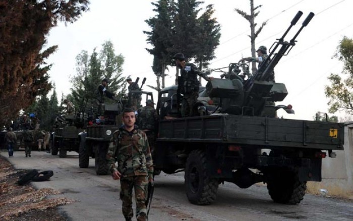 | Ngày 8/10, Tư lệnh các lực lượng vũ trang Syria, Trung tướng Ali Abdullah Ayoub tuyên bố quân đội Syria bắt đầu "cuộc tấn công quy mô lớn" để giành lại các thị trấn và làng mạc từ phiến quân "Nhà nước Hồi giáo" (IS) tự xưng cũng như các tổ chức khủng bố khác. Tướng Ayoub cũng cho biết các cuộc không kích của Nga đã làm suy yếu phiến quân IS và các nhóm vũ trang khác, đồng thời củng cố sức mạnh của quân đội Syria. Trong ảnh: Quân đội Syria và lực lượng ủng hộ Chính phủ triển khai tại một địa điểm ở miền tây Syria ngày 8/10. AFP/ TTXVN |