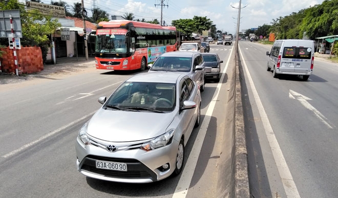 Khi đi qua đoạn địa bàn xã Tam Hiệp, huyện Châu Thành thì phát hiện phía trước có xe ô tô khác đang quay đầu. Phát hiện vụ việc nên tài xế cho xe giảm tốc độ để né tránh.