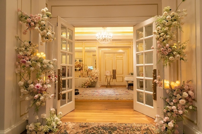 | Đám cưới của cặp đôi được tổ chức trong một khách sạn 5 sao sang trọng và tràn ngập hoa |