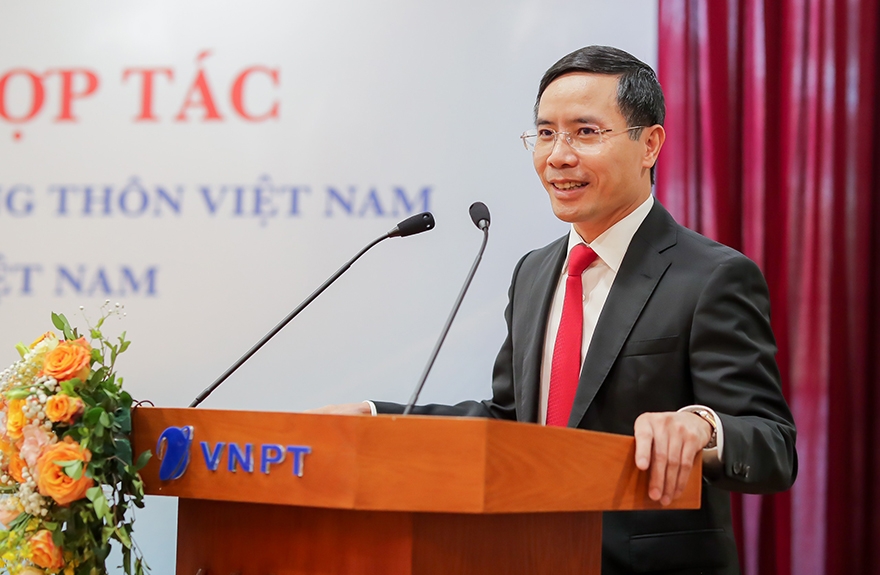 | Chủ tịch HĐTV Tập đoàn VNPT Tô Dũng Thái phát biểu tại lễ ký kết |