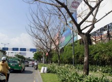 | Các bảng quảng cáo dần hiện ra sau khi các cây me tây trụi lá |