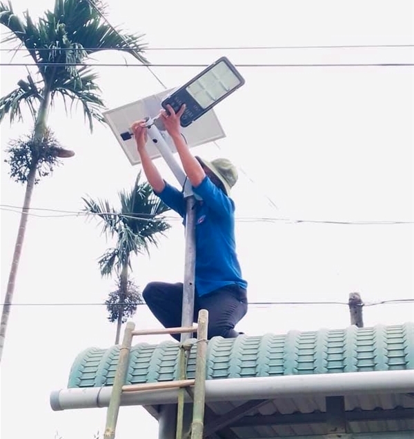 | Đoàn viên thanh niên thực hiện lắp các điểm ánh sáng an ninh |