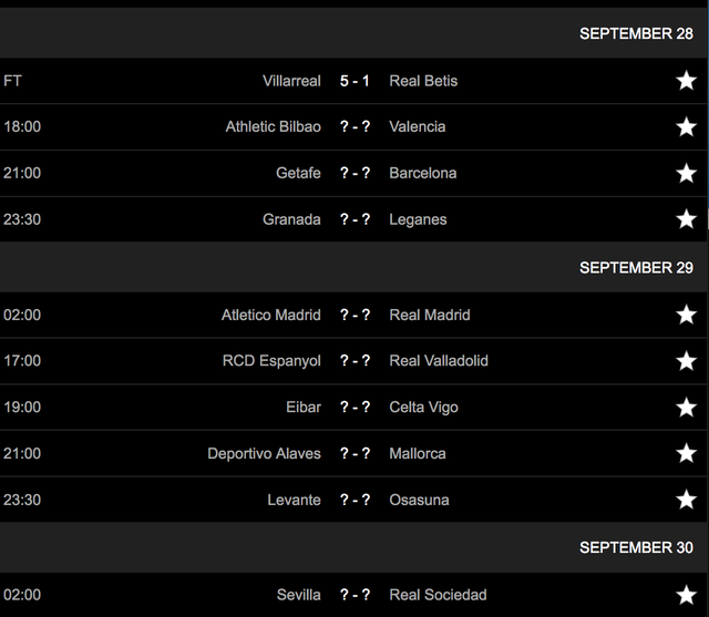| Lịch thi đấu và kết quả vòng 7 La Liga |