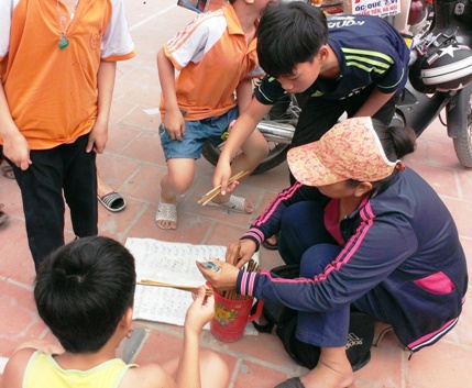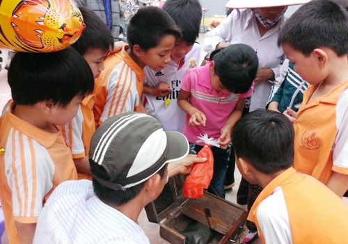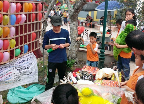 ..."cắt chỉ ăn tiền" xuất hiện tràn lan tại lễ hội làng Triều Khúc năm nay đã thu hút đông các em học sinh vào chơi.