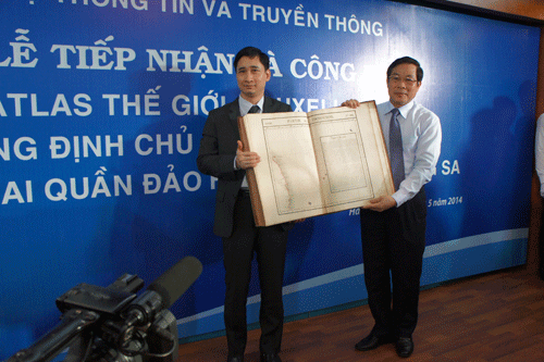 Khi có được những thông tin quan trọng này, ông Tổng giám đốc Công ty Dược phẩm ECO đã quyết định tài trợ mua trọn bộ 6 tập Atlas Thế giới để tặng lại Nhà nước để làm dầy dặn thêm cơ sở lịch sử và pháp lý về chủ quyền của Việt Nam ở Hoàng Sa. Đây thực sự là một tài sản quốc gia vô giá.