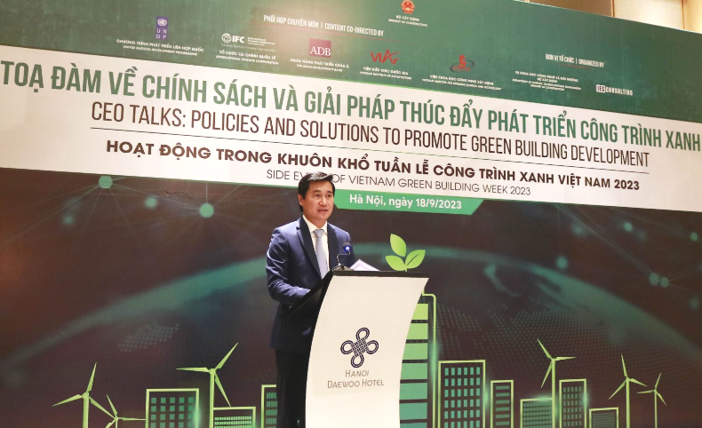 Phát biểu khai mạc tọa đàm, Thứ trưởng Bộ Xây dựng Nguyễn Tường Văn cho biết, thời gian qua, Đảng, Nhà nước, Chính phủ Việt Nam đã có nhiều chủ trương, chính sách thúc đẩy sử dụng năng lượng, tài nguyên tiết kiệm, hiệu quả, bảo vệ môi trường, giảm phát thải khí nhà kính trong các hoạt động kinh tế xã hội, trong đó có lĩnh vực xây dựng; đáng chú ý là Nghị quyết số 06-NQ/TW ngày 24/1/2022 của Bộ Chính trị về “Quy hoạch, xây dựng, quản lý và phát triển bền vững đô thị Việt Nam đến năm 2030, tầm nhìn đến năm 2045”; Chương trình hành động của Chính phủ thực hiện các Nghị quyết của Ban Chấp hành TW khóa XIII về tiếp tục đẩy mạnh công nghiệp hóa, hiện đại hóa đất nước đến năm 2030, tầm nhìn đến năm 2045, trong đó đưa ra định hướng chuyển đổi xanh nền kinh tế.