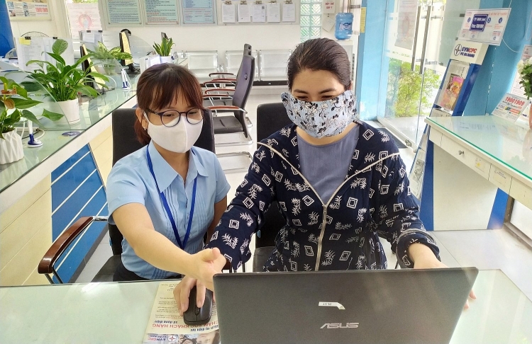 | Nhân viên ngành điện hướng dẫn khách hàng thực hiện các thủ tục giảm tiền điện |