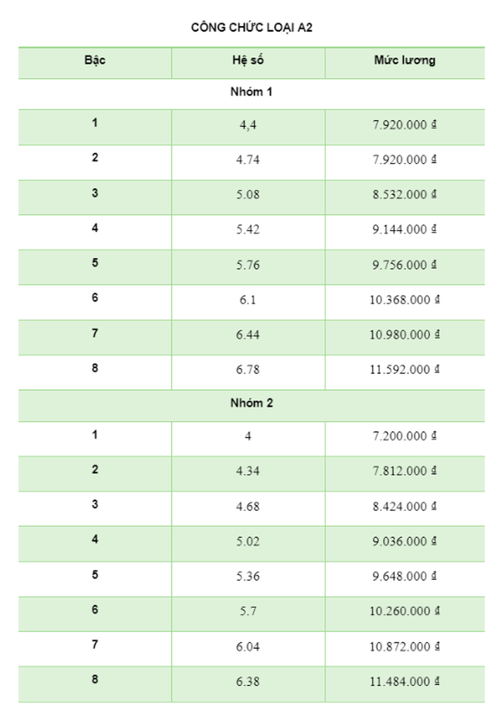 Chi tiết bảng lương công chức từ 1/7/2023:
