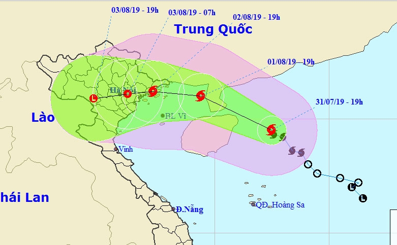 Dự báo trong 24 giờ tới, bão di chuyển theo hướng Tây Tây Bắc, mỗi giờ đi được 15km, khoảng chiều mai (1/8) sẽ đi vào Vịnh Bắc Bộ và có khả năng mạnh thêm. Đến 19 giờ ngày 1/8, vị trí tâm bão ở khoảng 21,0 độ Vĩ Bắc; 109,4 độ Kinh Đông, ngay trên vùng biển phía Đông Vịnh Bắc Bộ, cách Móng Cái (Quảng Ninh) khoảng 190km, cách Thái Bình khoảng 330km về phía Đông. Sức gió mạnh nhất vùng gần tâm bão mạnh cấp 9 (75-90km/giờ), giật cấp 12.