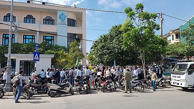 | Hàng trăm người dân vây xung quanh trụ sở Công ty cổ phần cấp nước Thừa Thiên - Huế xem giải cứu nữ nhân viên khỏi đối tượng nghi ngáo đá nguy hiểm. |