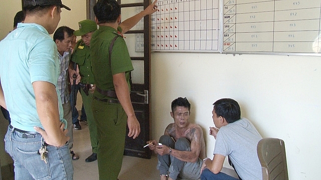 | Các điều tra viên đang tiến hành nghiệp vụ hỏi đối tượng Tĩnh. |