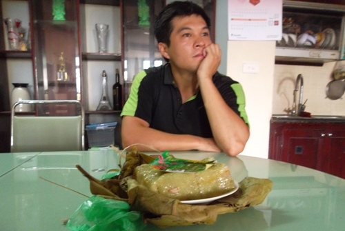 Anh Nguyễn Trường Giang mang chiếc bánh chưng thối ra cho PV PetroTimes xem.