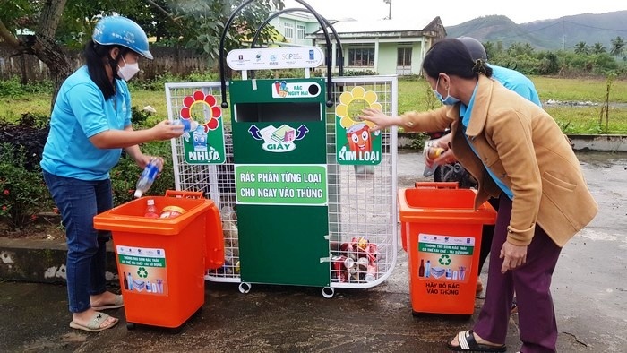 | Hội viên Hội phụ nữ tham gia phân loại rác tại nguồn. |