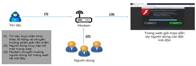 | Mô hình tấn công khai thác lỗ hổng bảo mật trên các thiết bị định tuyến (router). |