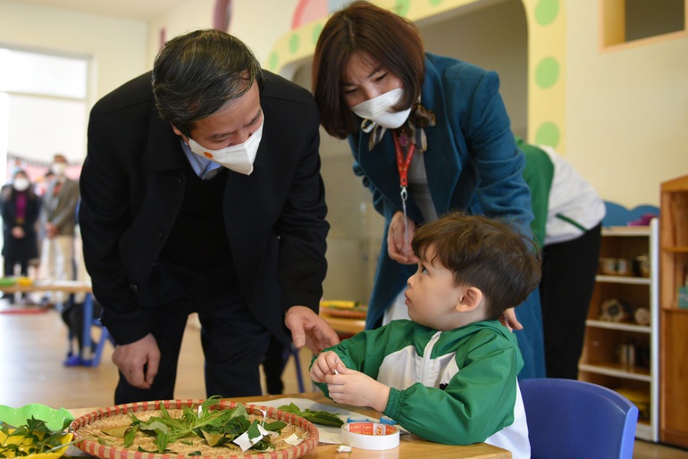 Bộ trưởng tại Trường Mầm non Búp Sen Xanh (TP Thanh Hóa, tỉnh Thanh Hóa) (Ảnh: Moet).