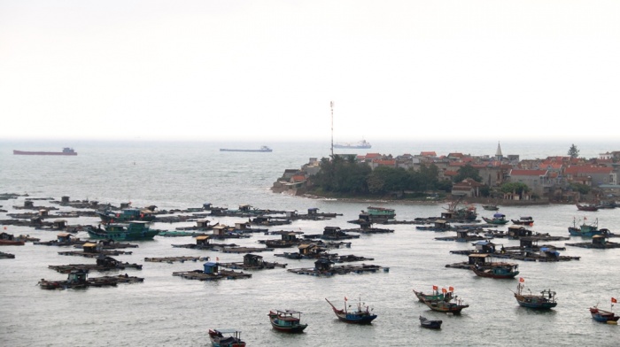 | Toàn cảnh eo biển nuôi cá bè tại Đảo Ngọc, xã Nghi Sơn - Thanh Hóa. |