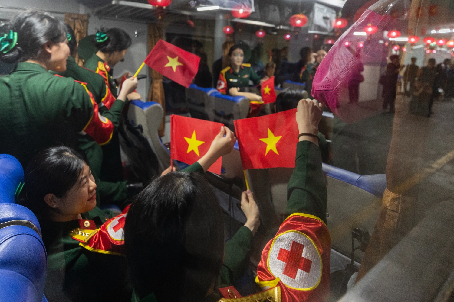 | Đoàn số 1 khởi hành từ ga Hà Nội gồm các khối nữ sĩ quan Quân y, khối nữ Sĩ quan Liên lạc và khối nữ Sĩ quan Quân nhạc. |
