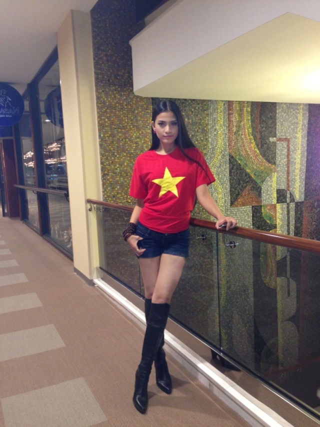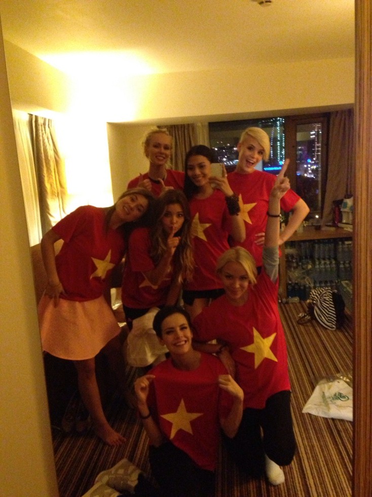 Các người đẹp Miss Universe 2013 mặc áo có quốc kỳ Việt Nam