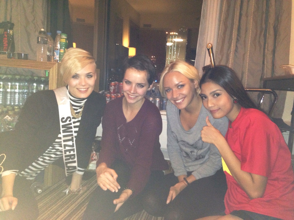 Trong hành lý mang qua Nga lần này, Trương Thị May đã chuẩn bị những chiếc áo quốc kỳ để tặng cho các bạn trong cuộc thi, với ý nghĩa món quà này sẽ mang điều may mắn cho tất cả mọi người. Sau một ngày hoạt động, các hoa hậu tập trung về phòng của Trương Thị May mặc chiếc áo có in hình cờ đỏ sao vàng, chụp ảnh ghi lại những khoảnh khắc đáng nhớ.