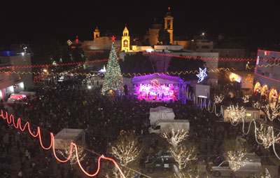 Ở thị trấn Bethlehem, ngay tại nơi có hang cỏ mà Chúa Giêsu được sinh ra cách đây hơn hai ngàn năm, mỗi dịp Giáng Sinh, người ta lập nên một hang đá vĩ đại, được trang trí lộng lẫy, với cờ bay lộng gió xung quanh. Trong đêm Giáng Sinh, giữa tiếng chuông vang lừng, cả người bản xứ lẫn du khách vây quanh cửa nhà thờ, hay đứng trên mái nhà cao để xem một đoàn rước được diễn ra hết sức trang trọng.