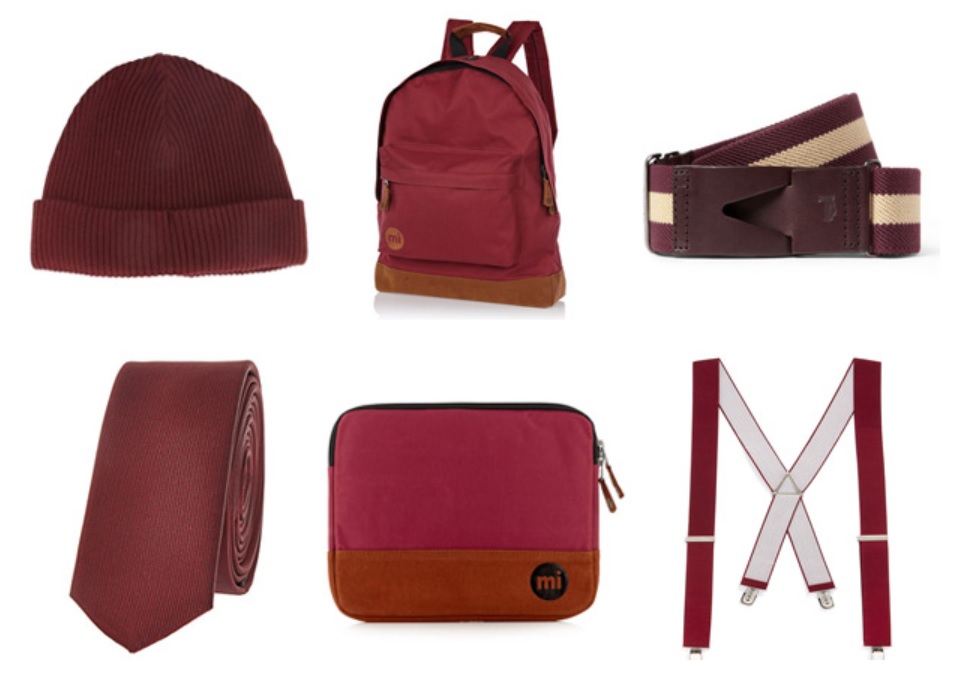 Khí nói về phụ kiện thì màu đỏ rượu vang chính là màu sắc sống động nhất hiện nay. Không kể từ cà vạt, măng xép, đến túi xách hay dây lưng, bạn luôn dễ dàng tìm thấy chúng đắm trong màu mận. Chìa khoá của vấn đề ở đây là chúng tôi khuyên bạn không nên dùng tất cả cùng một màu ( trừ khi là bạn đang tham gia một buổi chụp hình thời trang) nhưng nếu biết cách kết hợp chúng với những màu khác sẽ biến bạn trở nên tinh tế hơn bao giờ hết.