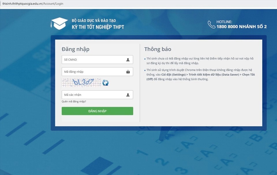 - Truy cập vào website của Bộ Giáo dục và Đào tạo: http://thisinh.thithptquocgia.edu.vn; và tra cứu điểm thi tốt nghiệp trên cổng thông tin điện tử của 63 Sở GD&ĐT địa phương.