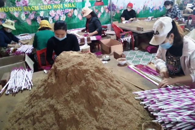 | Những ngày ngày cận Tết, làng nghề hương trầm rất hối hả vào vụ. |