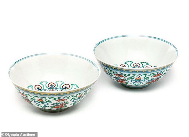 Cặp bát Sanduo bằng sứ đỏ và xanh của Trung Quốc thế kỷ 20, đã được bán bởi nhà đấu giá Olympia Auctions ở phía tây London.