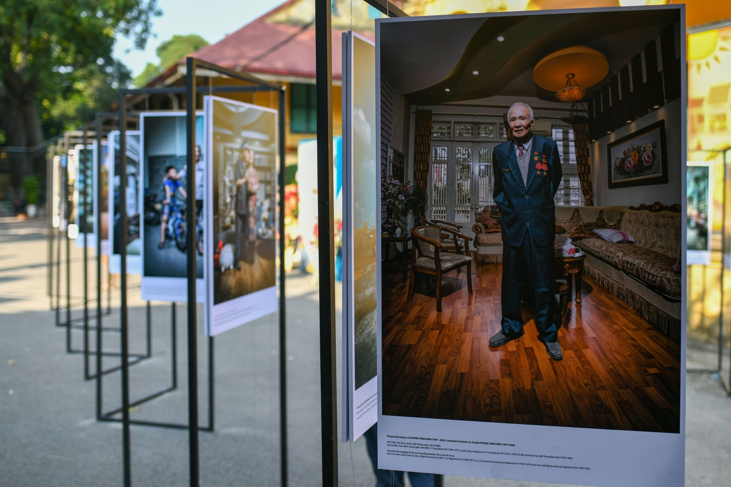 | Chân dung những phi công quân sự Việt Nam, những con người làm nên lịch sử, gắn liền với chiến dịch Điện Biên Phủ trên không, được trưng bày tại triển lãm. |