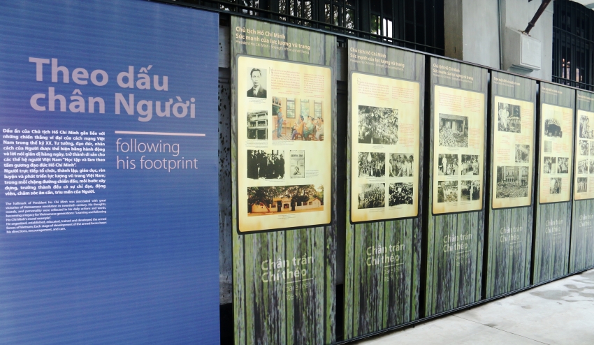 Phần "Theo dấu chân Người" là nội dung mở đầu của trưng bày. Dấu ấn của Chủ tịch Hồ Chí Minh gắn liền với những chiến thắng vĩ đại của cách mạng Việt Nam trong thế kỷ XX. Người đã hiến dâng trọn đời mình vì nước, vì dân. Người đau nỗi đau của dân, buồn nỗi buồn của dân; chịu khổ trước dân, vui hưởng sau dân; dựa vào dân, lấy dân làm gốc.