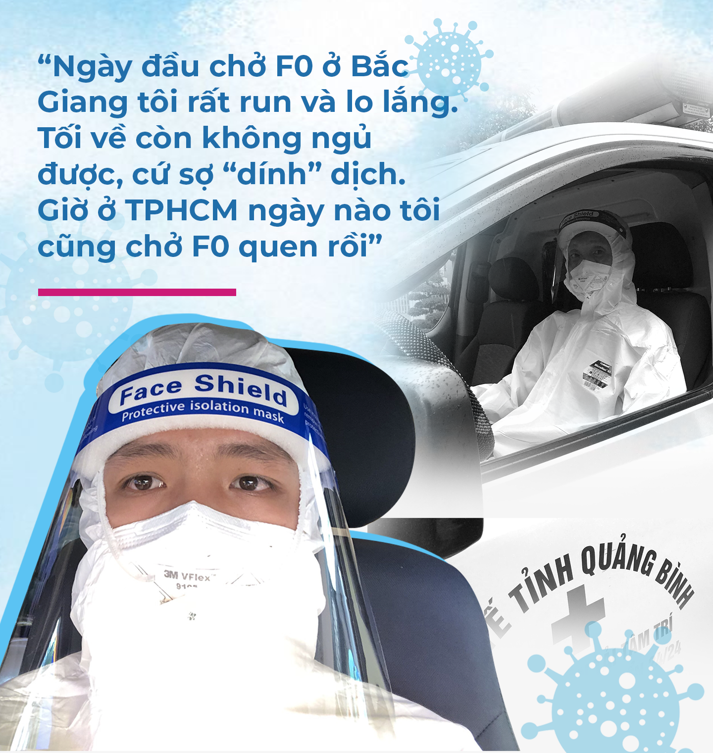 Trong những ngày tham gia chống dịch tại TPHCM, Trí đã đón hàng chục trường hợp F0 vào bệnh viện dã chiến. Có những chuyến đi khiến chàng trai trẻ Quảng Bình lòng nặng trĩu. Đó là chuyến Trí đón cả gia đình 5 người đều mắc Covid-19, trong đó có một em nhỏ chỉ mới 3, 4 tuổi cứ khóc thét khi nhìn thấy xe cứu thương. Rồi hình ảnh người nhà chỉ có thể đứng từ xa nhìn theo xe cấp cứu khiến Trí lòng quặn thắt.