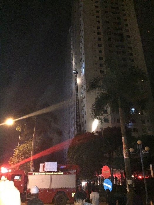 Chị Trần Thị Mỹ Dung (ở phòng 408, tòa nhà CT4A) cho biết: Vào thời điểm xảy ra hỏa hoạn, nhà chị có 4 người ở nhà (3 trẻ nhỏ và một người lớn) , khi lực lượng chức năng đến, họ mới được đưa xuống đất. Nhưng xe ô tô và xe máy để dưới tầng hầm thì có khi đã bị cháy hết.