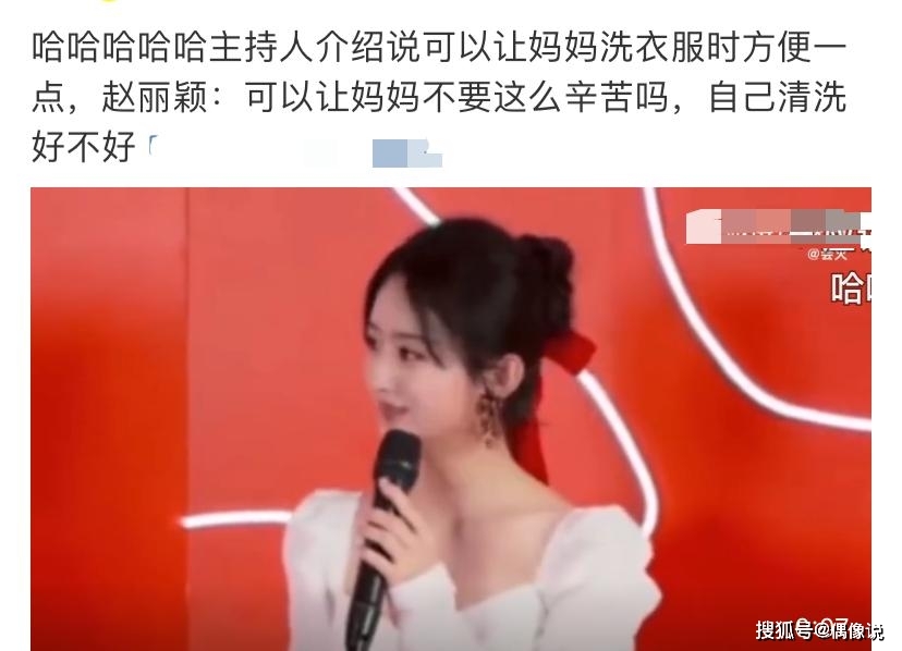 Triệu Lệ Dĩnh đã dành rất nhiều thời gian để giao lưu cùng người hâm mộ và người chủ trì của sự kiện. Cụ thể, hoạt động lần này là quảng bá cho một thương hiệu bột giặt quần áo, người chủ trì sự kiện đã giới thiệu rất nhiều công dụng của loại bột giặt này rằng sẽ giúp cho đôi bàn tay của các bà mẹ được nhàn rỗi hơn, vừa tiện lợi vừa có thể nhanh chóng tẩy đi những loại vết bẩn. Nghe đến điều này, Triệu Lệ Dĩnh liền biểu lộ sự không vui trên gương mặt, cô trực tiếp nói: "Có thể không để cho mẹ đừng khổ cực như thế không? Bản thân tự giặt không được sao?".