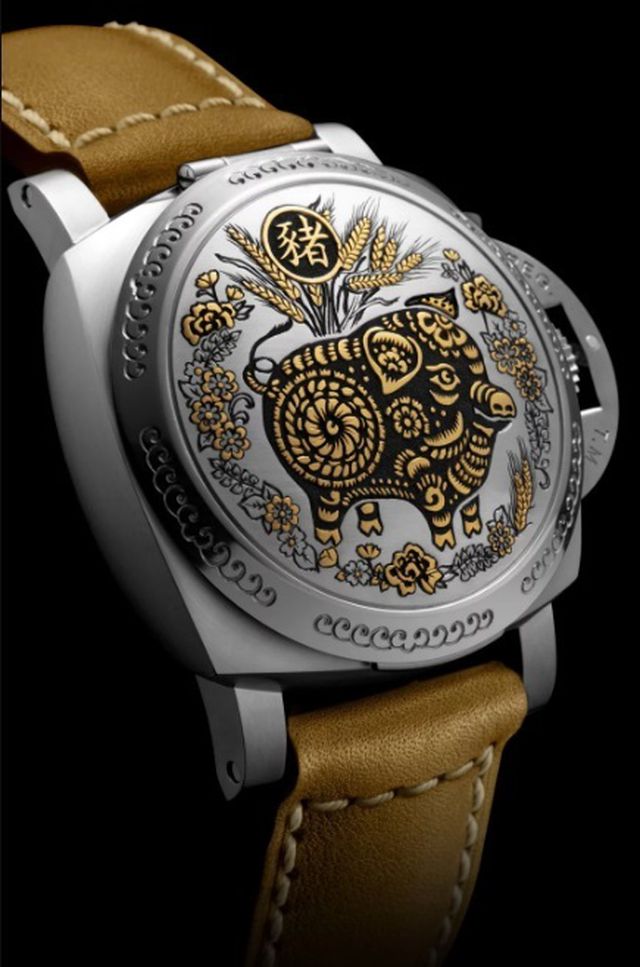 Một thương hiệu đồng hồ xa xỉ của Ý vốn có truyền thống tung ra mẫu thiết kế đồng hồ con giáp trước thềm dịp Tết của người Á Đông. Năm nay, trước thềm năm Kỷ Hợi, thương hiệu này cho ra mắt mẫu đồng hồ có nắp khắc họa hình con giáp Hợi và một chữ tiếng Hoa chỉ “chú lợn”. Mỗi khi tung ra một dòng đồng hồ con giáp, thương hiệu này chỉ giới hạn sản xuất 88 chiếc.