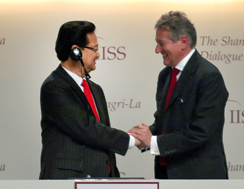 Thủ tướng Nguyễn Tấn Dũng trao đổi với Chủ tịch Đối thoại Shangri La 12. Ảnh: VGP/Nhật Bắc. |
