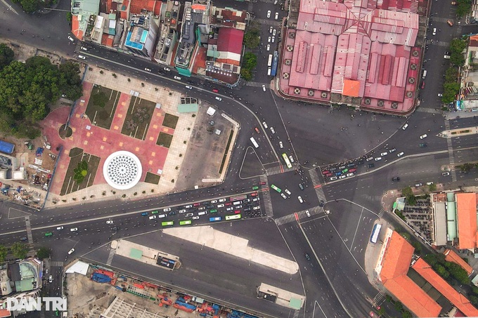 | Nút giao thông phía trước chợ, bên dưới là công trình ga Bến Thành, ga ngầm chính phục vụ khách đi Metro số 1 Bến Thành - Suối Tiên (Ảnh: Hải Long). |
