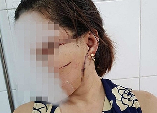 | Chị Vũ bị thương ở mặt và nhiều chỗ khác trên người. |