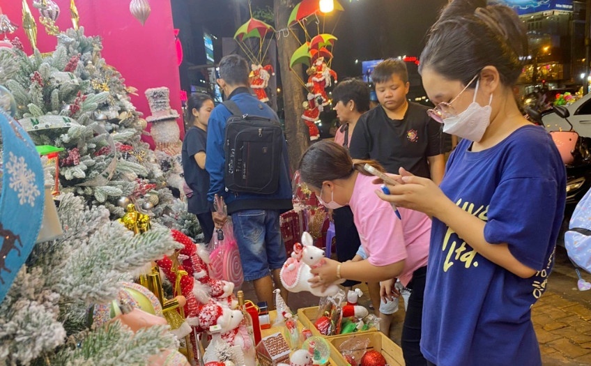 Anh Huy (25 tuổi), nhân công tại xưởng, dùng vạt áo lau mồ hôi, cười nói: "Mỗi ngày chúng tôi chỉ ngủ vài tiếng rồi dậy làm việc. Cả xưởng chuẩn bị từ đầu năm chỉ để chờ đến dịp Giáng sinh để xuất hàng đi nên dù tất bật mấy cũng thấy vui".