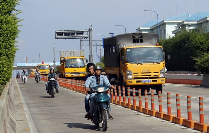 | Các phương tiện lưu thông ổn định vào đường hầm sông Sài Gòn |