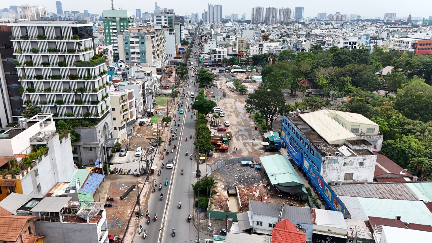 | Theo Ban Quản lý đường sắt đô thị TP HCM (MAUR), các quận đã cơ bản hoàn tất thủ tục ban hành quyết định thu hồi đất, đạt 100% (585/585 trường hợp). Tỷ lệ bàn giao mặt bằng đạt 98,46% (576/585 trường hợp). Trong ảnh là đường Cách Mạng Tháng 8, hai bên đường mặt bằng đã được bàn giao. |