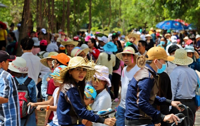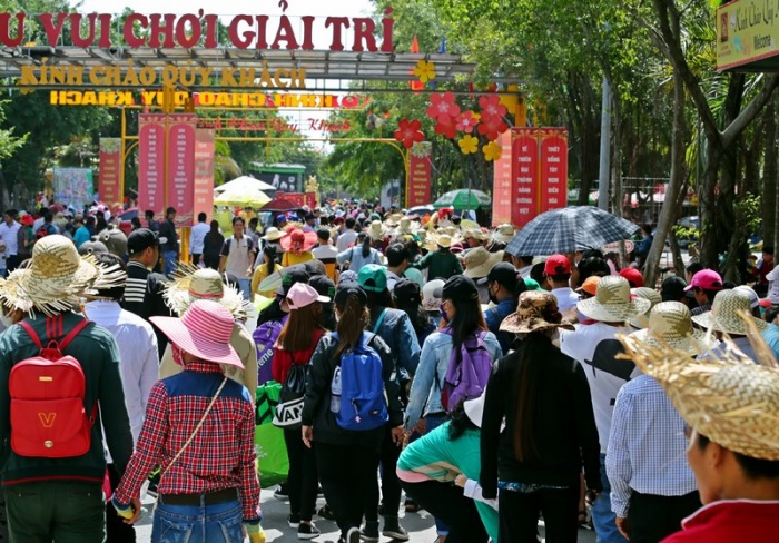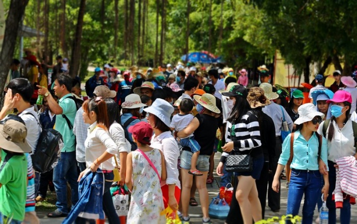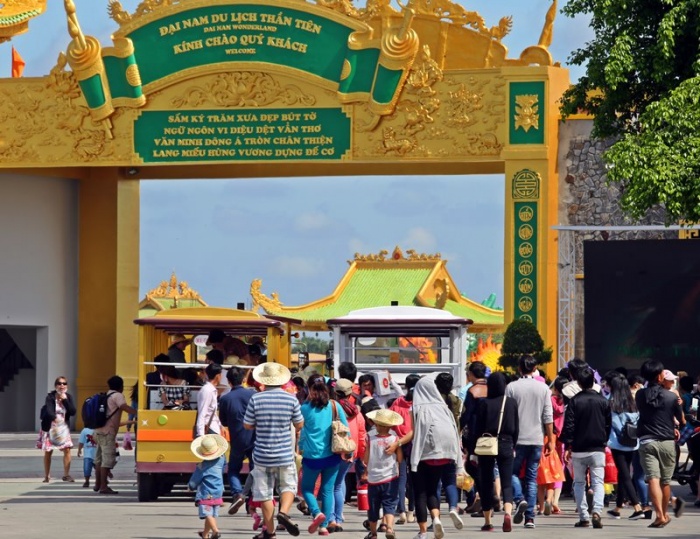 | Càng về trưa, khách tham quan đến Khu du lịch Đại Nam càng đông |