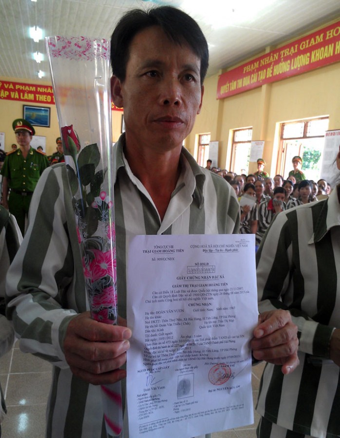 Sáng 31/8, cùng với 489 phạm nhân khác ở trại giam Hoàng Tiến (thị xã Chí Linh, tỉnh Hải Dương), anh em ông Đoàn Văn Vươn và Đoàn Văn Quý (ở huyện Tiên Lãng, TP Hải Phòng) được đặc xá, trả tự do trước thời hạn nhân dịp Quốc khánh 2-9.