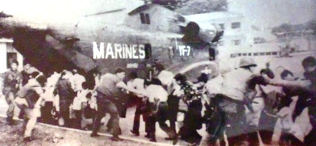 Nhân viên quân sự Mỹ lên máy bay trực thăng chạy khỏi Sài Gòn