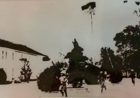 Các chiến sĩ quân giải phóng đang chạy vào Dinh Độc Lập cắm cờ Cách mạng