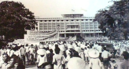Các tầng lớp nhân dân Sài Gòn đến mừng chiến thắng tại Dinh Độc Lập