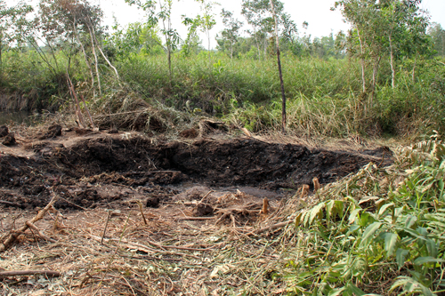 Hố sâu, rộng được cho là nơi phần thân máy bay rơi xuống.
