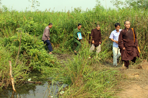 Thân nhân chiến sĩ bị nạn đến hiện trường thắp nhang và làm lễ cầu cúng.
