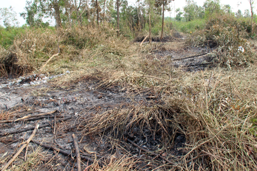 Hiện trường máy bay rơi tạo thành bãi trống rộng cả trăm mét vuông.