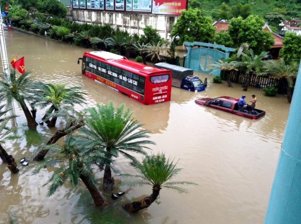 | Mưa lớn khiến nhiều nơi bị ngập trong biển nước. |